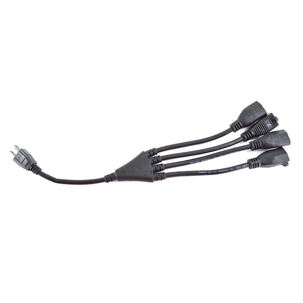 Heavy-Duty 16 AWG gauge power cable has four flexible cords to connect both a large wall wart and a power brick. Compatible with both 3 prong grounded cords and 2 prong electrical cords. Safe and reliable construction with a standard NEMA 5-15P grounded male power plug connected into four NEMA 5-15R female heavy-duty receptacles. 13A rating easily supports your power needs. Molded strain relief connectors with easy-grip features are constructed for long life, durability, and ease of use.