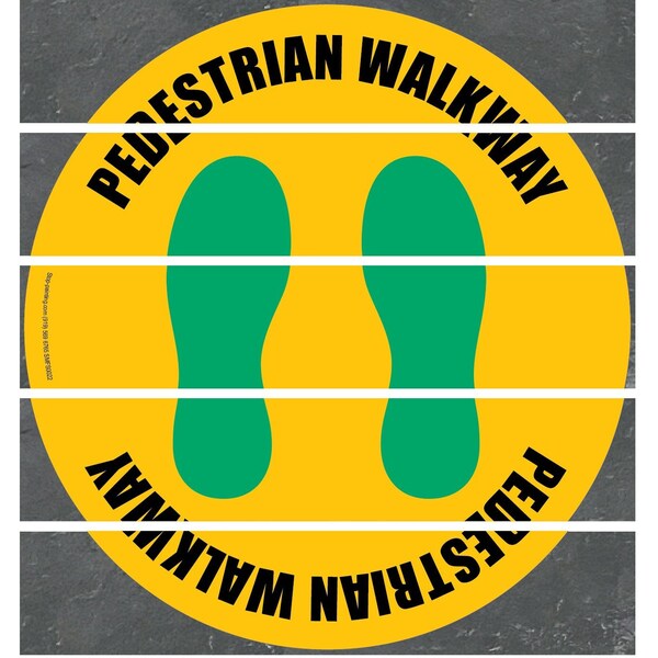 Pedestrian Walkway Floor Sign 17.5in, Yellow Bkgd/Black Text/Green Footprints, Superior Mark Tape-Actual Size 20inin