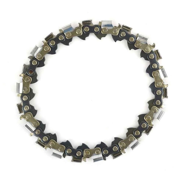 Replacement chain for 22-tooth Woodcarving Disc. These discs take the muscle work out of woodcarving with their speed, power and maneuverability. Only mount the 4" dia. blade in an authorized set of chain saw disc and watch the chips fly!It easily cuts the hardest woods regardless of grain or knots. The 22-tooth model and leaves a smoother finished surface. Teeth can be sharpened using a standard chain saw file. Maximum 14,000 RPM. Chains can be interchanged between the SS458 and SS478 models. Fits all mini grinders with 5/8" x 7/8" arbors..
