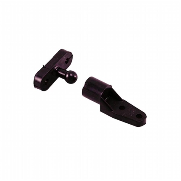 Features -Black polymer catch and ball stud. Holds door firmly in place against vibration and motion. -Stud size - 1-1/8 x 3/8 in. -Catch size - 1-3/8 x 7/8 in. -Includes both male and female sides. -Fastener - #4 RH - Screw