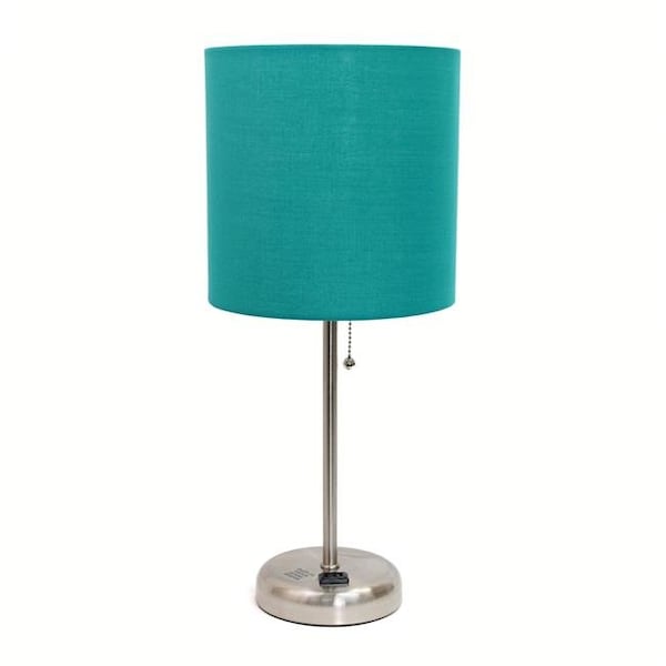 Lime Lights Stick Lamp with Outlet; Teal Fabric Shade (Discontinued)