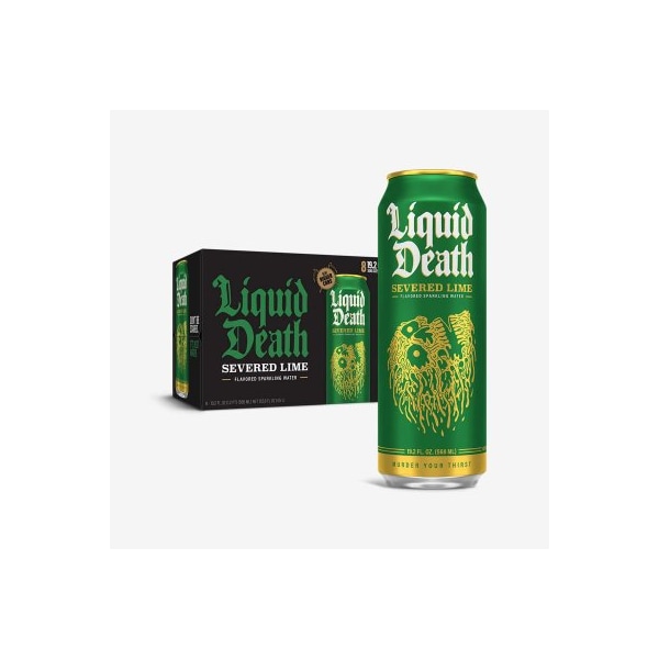 19.2OZ Lime Sparkling Water. Liquid Death is healthy beverage brand that consists of still water sparkling water flavored sparkling waters and iced teas. Naturally low sugar low calories and sustainably packaged. Iced Teas are micro dosed with 30mgs of caffeine B-Vitamins and electrolytes.