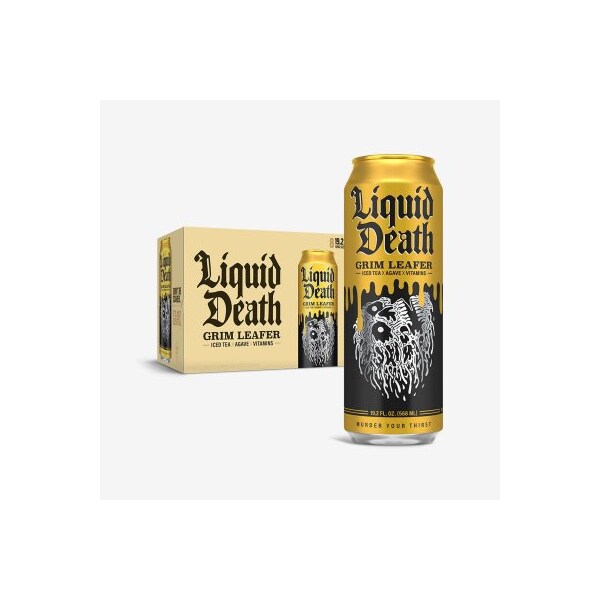 19.2OZ Peach Tea. Liquid Death is healthy beverage brand that consists of still water sparkling water flavored sparkling waters and iced teas. Naturally low sugar low calories and sustainably packaged. Iced Teas are micro dosed with 30mgs of caffeine B-Vitamins and electrolytes.