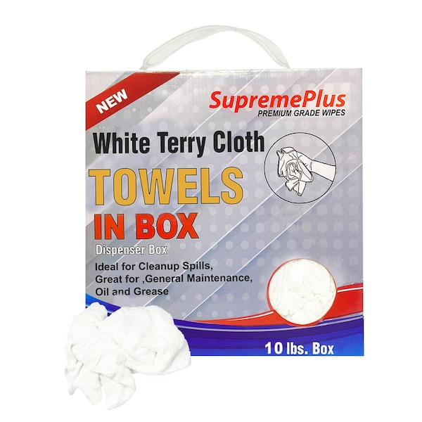 New White Terry Towel Cleaning Rags, 10 lbs. Compressed Box