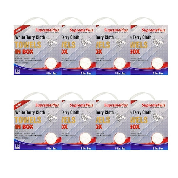 New White Terry Towel Cleaning Rags, 5 lbs. Compressed Box, Pack of 8, 8PK