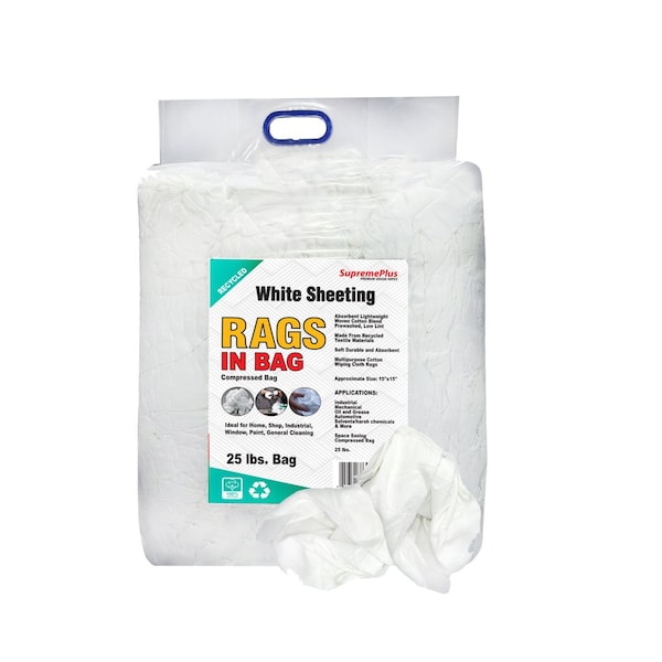 Recycled White Sheeting Cleaning Rags, 25 lbs. Bag