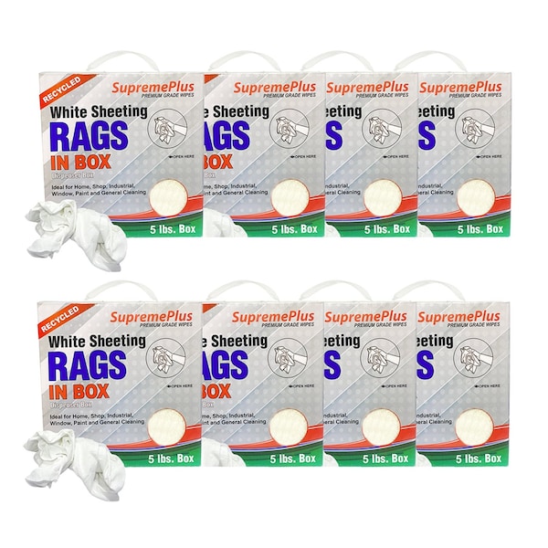 Recycled White Sheeting Cleaning Rags, 5 lbs. Compressed Boxes- Pack of 8, 8PK