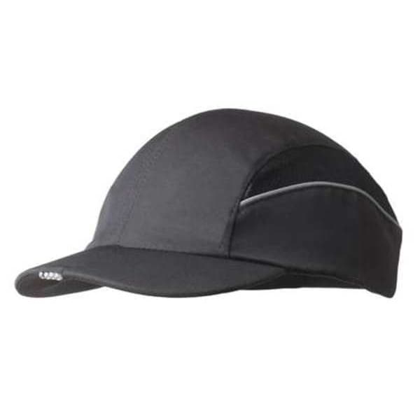 Bump Cap, Head Protection Style Short Brim Baseball, Head Protection Color Black, Head Protection Material Inner ABS Polymer, Outer Nylon, Fits Hat Size 7 to 7-3/4, Accessory Mounting Options None, Head Protection Venting Yes, Includes LED Lights Yes, Color/Graphics Type Basic Colors, Head Protection Graphics No Graphics, Suspension Adjustment Type Hook-and-Loop