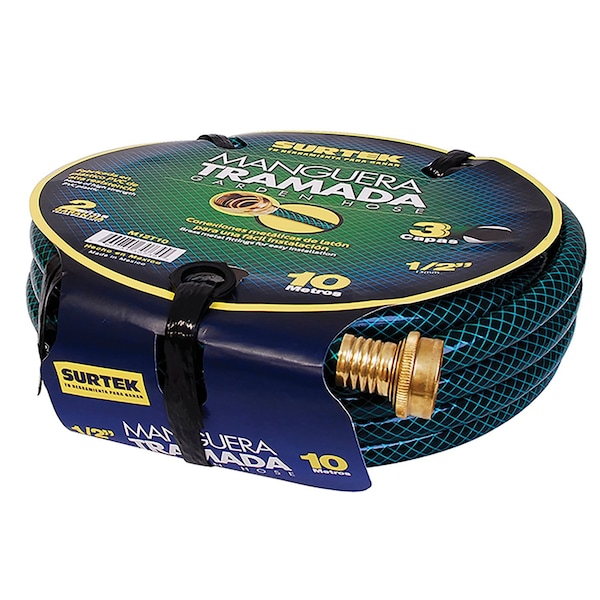 - Inner layer made of high-burst-resistance plastic.- Middle layer made of woven polyester yarn for better resistance.- Outer layer made of high-resistance plastic.- For home and commercial use. Poly-web woven that increases the polyester amount per square centimeter, increasing resistance and service life.- Brass fittings.