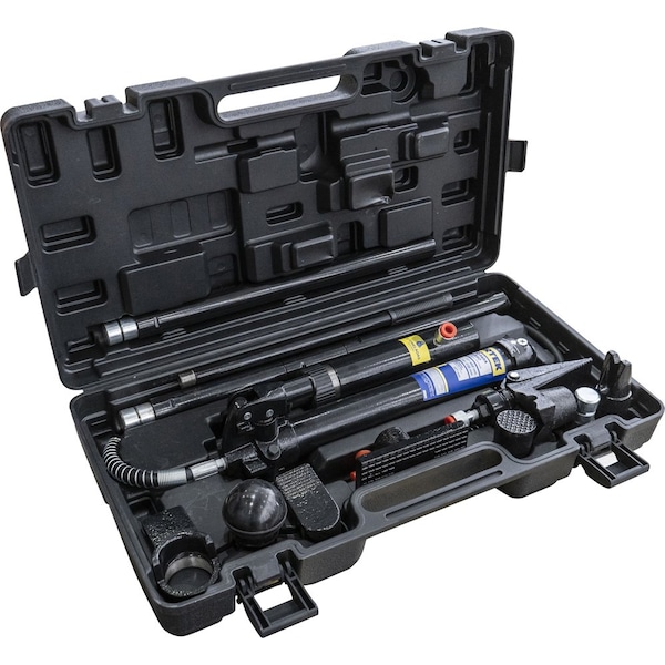 Reinforced pump and cylinder that extends the product’s service life. Extensions and accessories made of nodular iron. Practical plastic casing. Carbon steel couplings. 7 nodular iron accessories. Ideal in mechanical workshops for vehicle body shop repairs, general body repair, rescuing tasks and in any push, separation, traction or lifting application that requires hydraulic force.