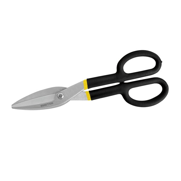 - Made of tempered carbon steel.- Satin coating to avoid corrosion.- For professional continuous tin crafting.- Handle coated with non-slip textured plastic.
