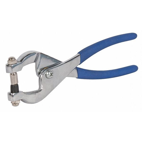 Ceiling Grid Punch, Punch Type Ceiling Grid Punch, Creates Hole Size 1/8 in, Weight 1.02 lb, Overall Length 8 1/2 in, Maximum Jaw Opening 3 in, Grip Style Plain, Maximum Metal Thickness 24 ga, Application Cross Tees, Main Tees, Wall Angle, Finish Galvanized, Frame Material Steel, Grip Material Vinyl, Handle Color Blue, Throat Depth 1 1/2 in