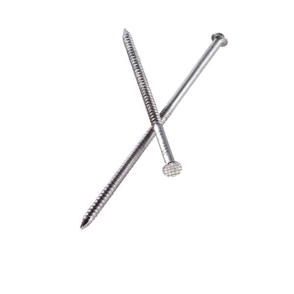 Highest quality nails for cedar, redwood and cypress siding materials. High tensile nickel or chromium stainless steel will last the life of wood siding without degradation ever. Slender gauge and blunt diamond point minimize splitting. Generous under-head fillet allows nails to be driven flush or countersunk without crushing surrounding wood. Checker pattern head blends with wood texture and serves to diffract sunlight. Annular ring threads preclude cupping of siding boards and nail-head popping.
