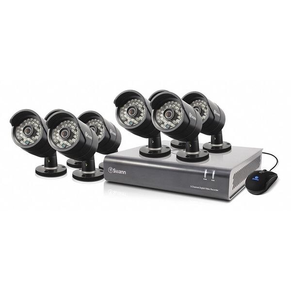 CCTV Kit, Camera Resolution 720, Camera Diameter 2 39/64 in, Camera Height 7 7/64 in, Camera Length 2 39/64 in, Camera Width 2 39/64 in, Includes Hard Drive, (8) PRO-A850 720p Cameras, (8) BNC Cables 60 ft, Ethernet Cable, HDMI Cable, Power Adapter and Splitter, Mouse, Mounting Screws and Plugs, Quick Start Guide, Theft Deterrent Stickers, Number of Channels 8, Recording Modes Schedule, Motion, Manual