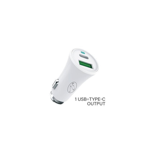 2 Port USB Car Charger, 3.4A total. Cigarette Lighter Plug, 1x USB Type A, 1x USB Type C, White (Discontinued)