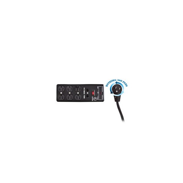 Plug Adapter, Surge, 5-15R, 5-15P, 10 ft., Black