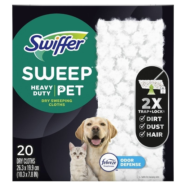 Swiffer sweeper heavy-duty pet dry cloths are super thick with fluffy 3D fibers that clean everywhere, even deep in grooves, to trap and lock 2X dirt, dust and pet hair. Yep, shed happens but sweeper heavy-duty dry cloths make it easy to keep up and reduce odors.