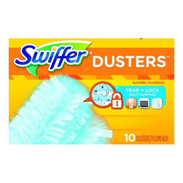 - • Swiffer Dusters TRAP + LOCK dust & allergens (common inanimate allergens from cat and dog dander & dust mite matter)