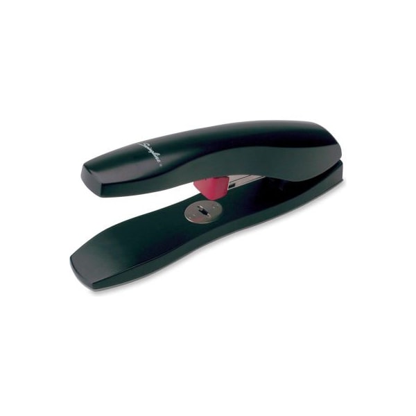 Swingline high capacity desk stapler s7077701 levered high-capacity professional stapler reduces force needed to staple documents by 30 percent, while it uses flat clinch technology to staple up to 60 sheets with one 3/8" staple size. Advanced mechanism eliminates the need for thick, heavy-duty staples. Offers open channel loading of a full strip of 3/8" high-capacity staples. 2-1/2" throat depth. All-metal die-cast body ensures years of durability.