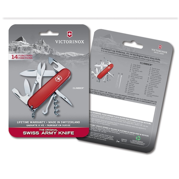Welcome to the world of the Officer's knife. This is where the legend of the Swiss Army Knife began. And it continues today with the Climber pocket knife. Its 14 functions are as sharp strong and intuitive as you need them to be. So no matter if you're climbing up the corporate ladder or a class 5 crag the Climber is with you all the way to the top.