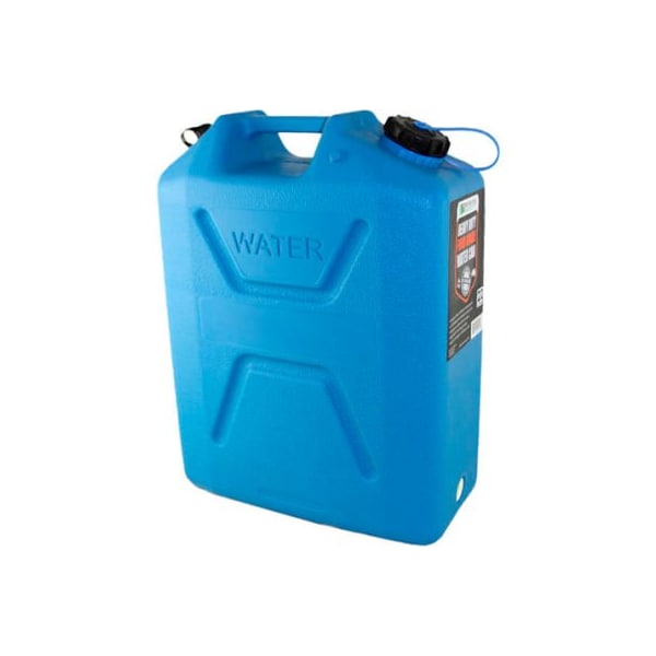 heavy duty plastic water cans are bpa free, food grade. Made in australia for the military. Uv stabilized for extended outdoor use. Opaque resin inhibits bacterial growth. Textured non-slip surface for grip. Spigot spout for dispensing water. Breather for no-glug pouring. Ideal for storage of drinking water. Holds 5 gallons or 22 liters. blue.