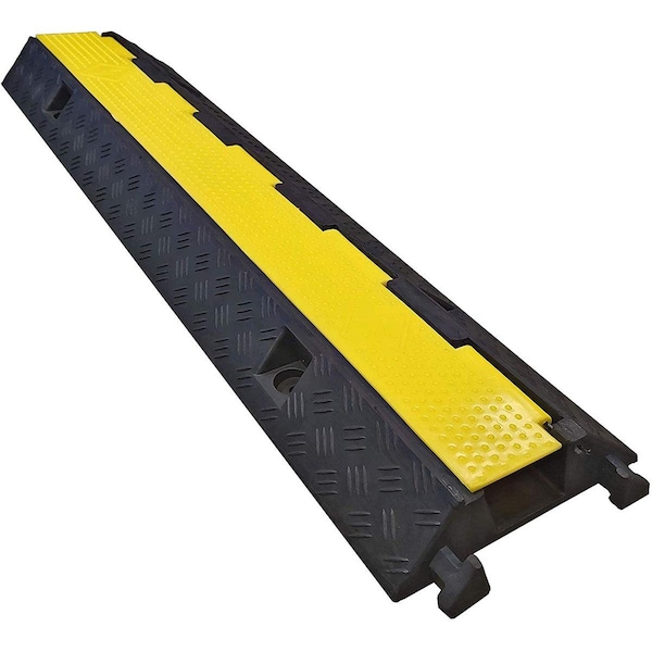 Cable Protector, 2-1/2 in H, 38-1/2 in L, 10.12 in W, 1 Channel, Rubber, Black, Yellow