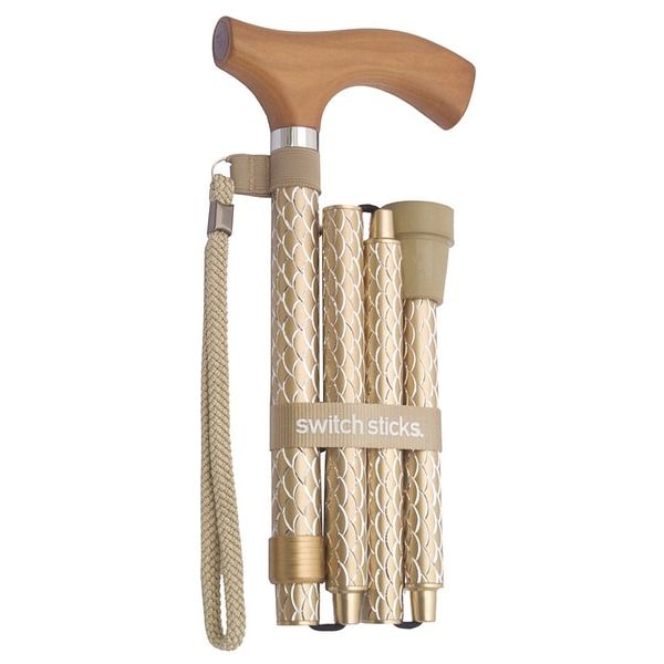 Walking Stick, Standard Handle Type, Single Base Type, Height 32 in to 37 in, Weight Capacity 264 lb, Color Pearl Gold, Handle Material Wood, Base Size 1 in x 1 in, Includes Water Resistant Bag