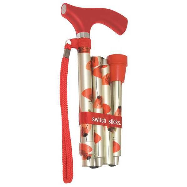 Walking Stick, Standard Handle Type, Single Base Type, Height 12 in, Weight Capacity 264 lb, Color Poppies, Handle Material Wood, Base Size 1 in x 1 in, Includes Water Resistant Bag