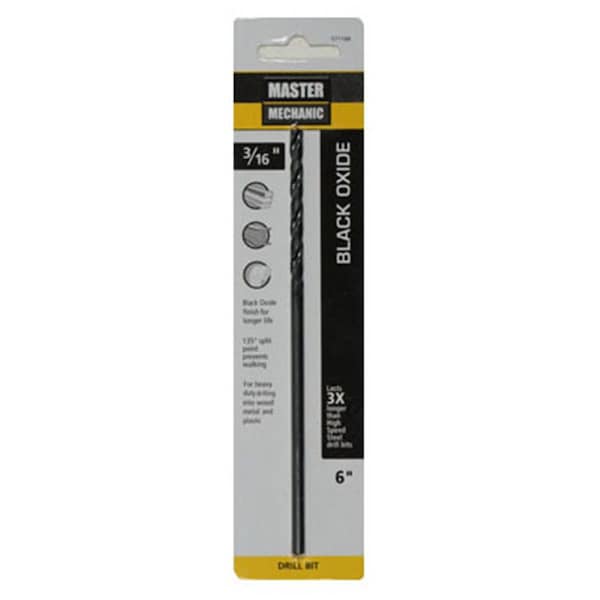 0.187 x 6 in. Master Mechanic Extra Length Oxide Drill Bit - Black