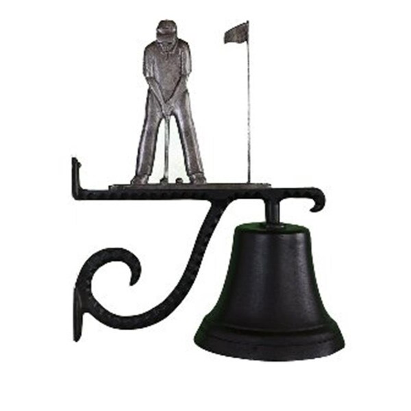 Cast Bell with Swedish Iron Putter Ornament Enjoy The nostalgic look and sound of this cast aluminum bell at an entrance or mounted on a post in your garden. Features -Baked on satin black enamel finish -Ornament Color - Swedish Iron -Bell Dimension - 6 in. High with a 7.75 in. Diameter base -Bracket Dimension - 9 in. High x 12.5 in. Long -Ornament Dimension - 8 in. High x 8 in. Long