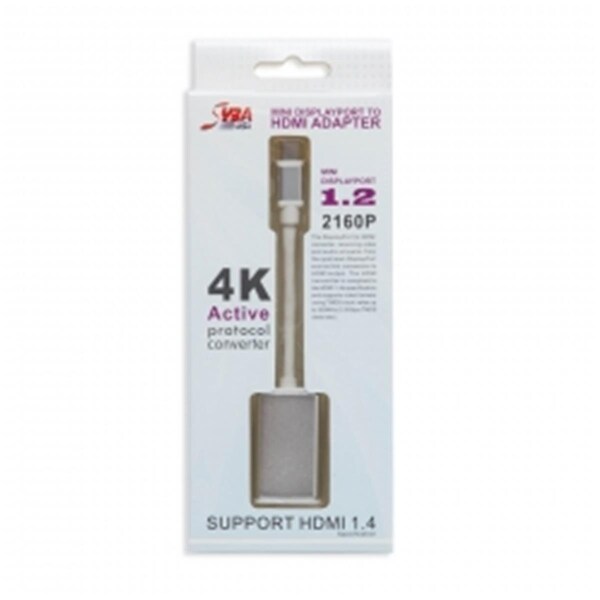 Connects your mini DisplayPort capable devices directly to your TV and monitor using this adapter. Based off of DisplayPort technology which supports the 4K ultra HD display. Perfect travel cable easy to carry and pack during business or leisure trips! 6 in. Mini DisplayPort v1.2 to HDMI v1.4b 4K Adapter Audio/3D Video Cable. Features -Fully Compliant HDMI Output Up to 300 MHz clock -HDMI 1.4 Video Compliant -DisplayPort Video and Audio Compliant -Full HDCP 1.3 Content Protection Support -RGB at 6/8/10/12 bpc bits-per-component Supported -YCbCr 4:4:4 and YCbCr 4:2:2 8/10/12 bpc Supported -8-ch LPCM Compressed Audio and HBR Audio Format Up to 24-bit Audio Sample Size and 192 KHz Sample Rate -Internal Crystal Oscillator Supports External Crystal or Reference Clock