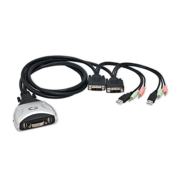 Cable 2 Port KVM Switch DVI-USB-Audio Perfect for Windows and Mac Systems