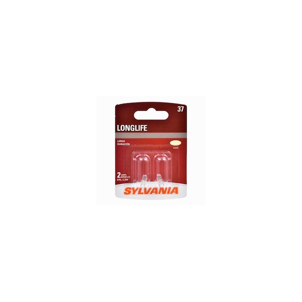 Twin bulb pack Sylvania Long Life miniature bulbs provide standard performance, rated at 2800 service hours, 180 lumens at 2800K light output. Ideal for use in your car's interior and exterior clear bulb needs. Long Life bulbs are a approved direct replacement for your vehicle.