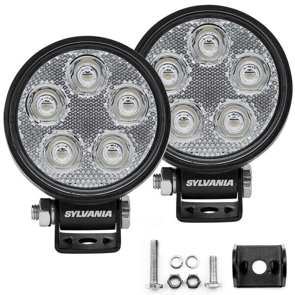 LED Bulb; 5 OSRAM Clear LEDs; 3 Inch Round; 0.7 AMP At 12 Volt DC; Spot Beam; 950-Raw/ 527 Effective Lumens; Clear Lens; Black Aluminum Housing; Stem Mount; With Mounting Hardware; Set Of 2; Requires Driving/ Fog Light Wiring Harness