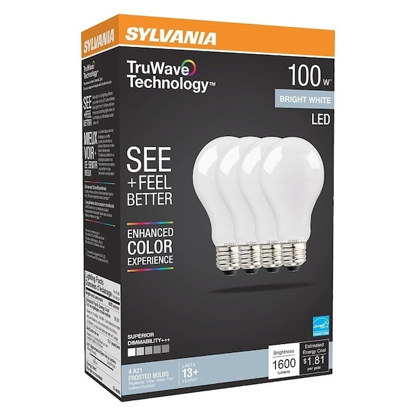 Natural LED Bulb, A21 Lamp, 100 W Equivalent, E26 Medium Lamp Base, Dimmable, Frosted