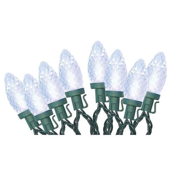 Santas Forest LED Lights, Spool, C9, Faceted, Clear White, 100 ct