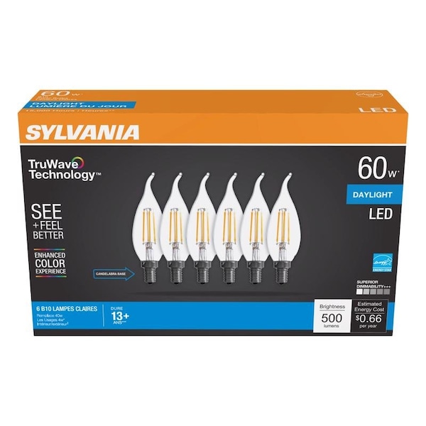 Sylvania Truwave B10 E12 (Candelabra) LED Bulb Daylight 60 Watt Equivalence 6 pk