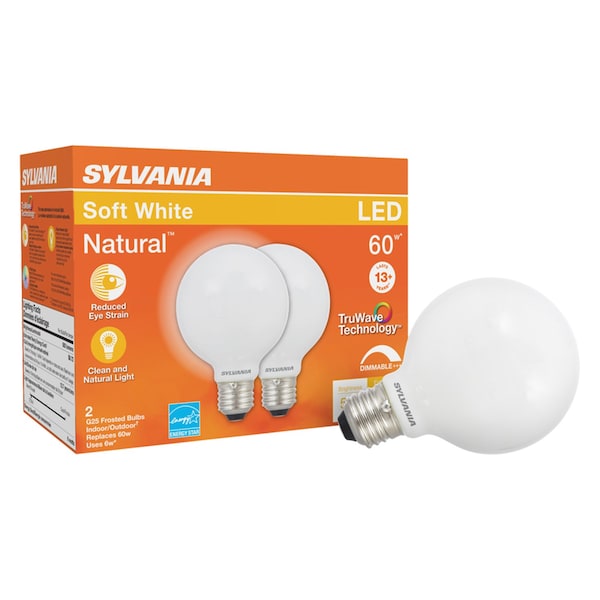 Sylvania TruWave G25 E26 (Medium) LED Bulb Soft White 60 Watt Equivalence 2 pk