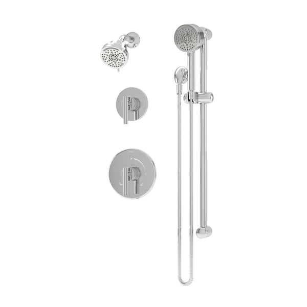 Introducing the Dia Two Handle Wall Mounted Shower Trim with Hand Spray, a sophisticated addition to contemporary bathroom designs. Crafted with durability in mind, this shower trim kit is plated in a scratch resistant finish over solid metal, ensuring lasting style. With its solid brass valve cover plate featuring hot and cold indicators, adjusting water temperature is effortless. Plus, the eco friendly low flow rate of 1.5 gallons per minute and WaterSense certification of the multi mode showerhead conserve water without compromising performance, saving you money on your water bill. Installation is quick and easy with everything you need included: a shower arm, low flow showerhead, handheld sprayer with a 60 inch flexible hose, slide bar for the handheld sprayer, brass escutcheon, and adjustable lever handle. And you won't need to replace your valve, making the upgrade hassle free. Backed by Symmons' limited lifetime warranty, you can trust in its quality and durability for years to come. Experience showering with the modern 4 inch round showerhead design and 7 spray and control modes, powered by HydroMersion technology for increased pressure and force.