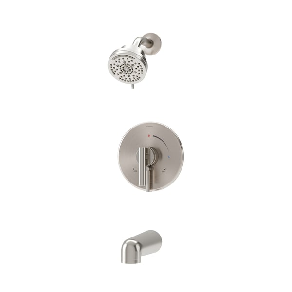 The Dia Single Handle Wall Mounted Tub and Shower Trim is designed to complement contemporary bathroom designs. Crafted with durability in mind, this tub and shower trim is plated in a scratch resistant finish over solid metal, ensuring long lasting elegance in your bathroom. Featuring an ADA compliant single lever handle design, the solid brass valve cover plate boasts hot and cold indicators, enabling effortless customization of water temperature. At an eco friendly low flow rate of 1.5 gallons per minute, the multi mode showerhead is WaterSense certified, allowing you to conserve water without compromising on performance. The round showerhead also has 7 spray and control modes and is powered by HydroMersion technology for increased pressure and force. This comprehensive tub and shower trim kit includes everything you need for swift installation, including a showerhead, shower arm, escutcheon, tub spout, shower lever handle, and a handle to adjust the flow of water from the showerhead to tub spout. Backed by a limited limited lifetime warranty, the Dia Single Handle Wall Mounted Tub and Shower Trim is a reliable investment in your bathroom's future.