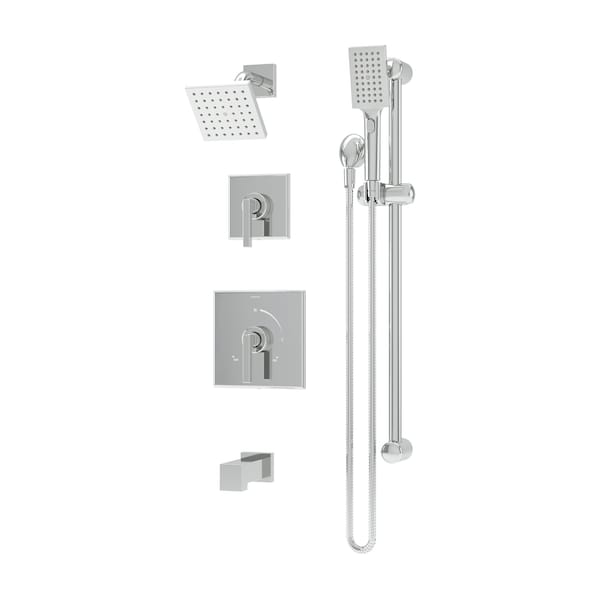 Crafted to perfection, this Duro Two Handle Wall Mounted Tub and Shower Trim Kit trim kit is encased in a scratch resistant finish over solid metal, ensuring enduring elegance in your bathroom. This kit includes all you need for a complete bathing experience: a shower arm, low flow showerhead, hand spray with a 60 inch flexible hose, a slide bar for the hand spray, brass escutcheon, adjustable lever handle, and tub spout. Enjoy effortless customization of water temperature with the solid brass valve cover plate, featuring hot and cold indicators. Plus, the WaterSense certified single mode showerhead conserves water at an eco friendly low flow rate of 1.5 gallons per minute, reducing your water bill without compromising performance. The showerhead is powered by HydroMersion technology, which channels water for increased pressure and force, creating a total spray pattern with 49 individual nozzles for complete coverage. With everything required for quick installation, updating your bathroom is a breeze without the need to replace your valve. Crafted with durable features, the Symmons Duro Two Handle Wall Mounted Tub and Shower Trim with Hand Spray seamlessly integrates into any modern bathroom and is backed by our limited lifetime warranty.