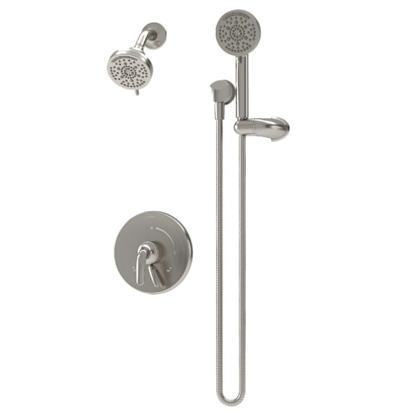 The Symmons Elm Collection offers simple sophistication blending sleek form and simple lines with an organic design. Plated in a high quality finish over solid metal, this Elm shower trim has the durability to add contemporary styling to your bathroom for a lifetime. It includes a showerhead, shower arm, escutcheon, hand shower with 60 inch flexible hose, a cradle for the hand shower, shower lever handle, and a diverter handle on the escutcheon to switch the flow of water between the showerhead and hand shower wand. This trim kit's 4 inch multifunction showerhead has HydroMersion technology, which channels water for increased pressure and force. The fixed showerhead offers various modes, including full, massage, waterfall, spa, and pause. The solid brass valve cover plate features hot and cold indicators to ensure custom water temperature setting and ease of use. At a low flow rate of 1.5 gallons per minute, the eco friendly showerhead conserves water without affecting performance, saving you money on your water bill. This model includes everything you need for quick installation, allowing you to update your bathroom without replacing your valve. It is also backed by the Symmons technical support team and a lifetime limited consumer warranty.