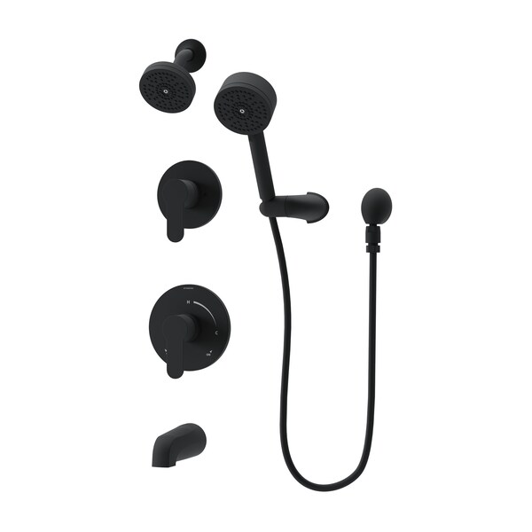 Experience the timeless sophistication of the Symmons Identity Collection with this comprehensive tub and shower trim kit. Included in this kit are essential components for a complete shower experience: a tub spout, shower arm, showerhead, hand shower with a 60 inch flexible hose, a wall mount, wall elbow for the hand shower, two lever handles, and escutcheons. The showerhead is WaterSense certified with a low flow rate of 1.5 GPM. The 4 inch round showerhead is powered by HydroMersion technology for increased pressure and force. This Identity trim kit is backed by a limited lifetime consumer warranty and a 10 year commercial warranty.