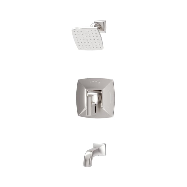 The Oak Collection's transitional design makes it a perfect complement for a variety of bathroom styles. This Oak Tub and Shower Trim with VersaFlex Integral Diverter offers a seamless blend of functionality and elegance. This system includes a 5 inch single function showerhead equipped with HydroMersion technology, which channels water for increased pressure and force, delivering a total spray for full coverage. The shower's EverFlow rubber spray nozzles are non corrosive and easy to clean, ensuring a long lasting, pristine look. The 6.5 inch non diverter tub spout and the VersaFlex Integral Diverter handle allow for effortless switching between the showerhead and tub spout. With a water saving flow rate of 1.5 GPM (5.7 L/min), this trim set is both eco conscious and efficient. Installation requires a 16 or 26 series Symmons Temptrol valve (not included). The Oak Tub and Shower Trim is backed by a Limited Lifetime Residential Warranty and a 10 Year Limited Commercial Warranty for reliable performance and peace of mind.