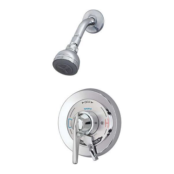 Shower Faucet, ADA Compliance No, Non CEC Compliant, Connection Size 1/2 in, NPT, Face Shape Circle, Faucet Body Material Plastic, Faucet Handle Type Lever, Fixed Showerhead Flow Rate 2 gpm, Fixed Showerhead Width 3 in, Handheld Showerhead Flow Rate 2.5 gpm, Handheld Showerhead Width Not Applicable, Number of Handles 1, Symmons, Temptrol(R) Commercial Shower System Series, Shower Connection Type NPT, Shower Valve Type Pressure Balancing, Showerhead Function Single, Showerhead Material Plastic
