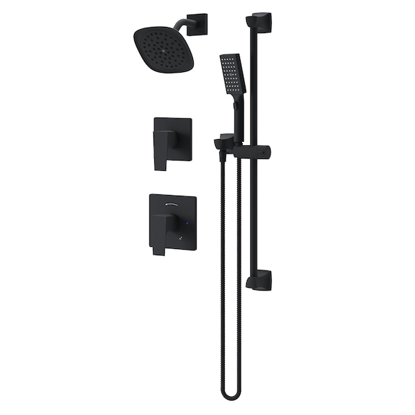 The styling of this Verity Single Handle Wall Mounted Shower Trim Kit was inspired by trend-forward square contemporary design. This shower trim kit includes a showerhead, shower arm, escutcheon, hand spray with 60 inch flexible hose, a slide bar for the hand spray, and shower lever handle. The valve cover plate features hot and cold indicators to ensure custom water temperature setting and ease of use for everyone. At a low flow rate of 1.5 gallons per minute, the single mode showerhead conserves water without affecting performance, saving you money on your water bill. This model includes everything you need for quick installation, allowing you to update your bathroom without replacing your valve. With durable features that are crafted to last and a unique, minimalistic style, the Symmons Verity Single Handle Wall Mounted Shower Trim is an affordable to any modern bathroom and is backed by our limited lifetime warranty.