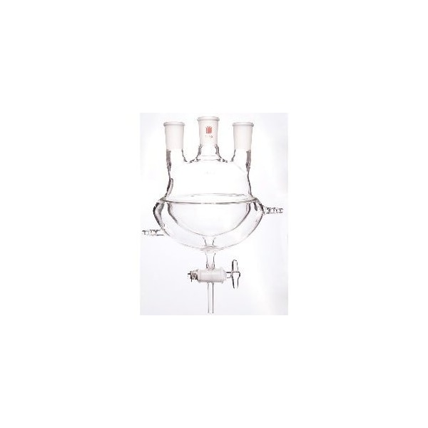 FLASK, RND BTM, 3NCK, HALFJACKTD, W/STOPCK DRAIN, GLS, 500mL, 29/42. INCLUDES ACCESSORIES: S461740 + S691740