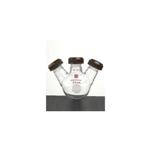 FLASK, ROUND BOTTOM, 3-NECK, 50mL, 14/10.
