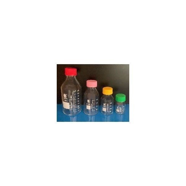 GL45 WIDE MOUTH MEDIA STORAGE BOTTLE WITH COLOR CAPS, 100mL.
