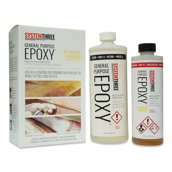 Economical without sacrificing performance. General Purpose Resin Epoxy is a versatile, all-around epoxy resin system used in both marine and woodworking applications. Featuring a convenient 2:1 mixing ratio and 3 different hardeners, it offers premium performance across a broad spectrum of environmental conditions. Our fiberglass resin wets out fiberglass cloth very well and can be mixed with various fillers, like silica thickener, to create non-sagging adhesives, filleting and fairing compounds for marine applications. Use with System Three Epoxy Pigment Concentrates for woodworking applications.